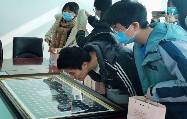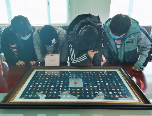 仪式结束后,商学院志愿者共同观赏国际奥委会205成员(国家/地区)奥委会徽章,学习奥运知识。