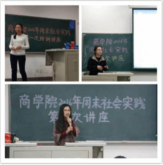 团队组建后,由商学院学术实践部组织开展了共计三次社会实践培训讲座,三次讲座分别从文献检索与综述、人物访谈、问卷制作与分析、实践报告的撰写等方面展开讲解,在讲座培训中分别邀请了黄颖、卫云、邱咏梅及其团队作为主讲人,为2016级新生们学习到了社会实践的整个过程,从如何选题到前期准备,从实践方法到数据收集,从数据分析整理到实践报告撰写给予了详细的指导,讲座后同学们积极提问,主讲人也一一解答。为后期实地实践活动的开展做足充分的准备。