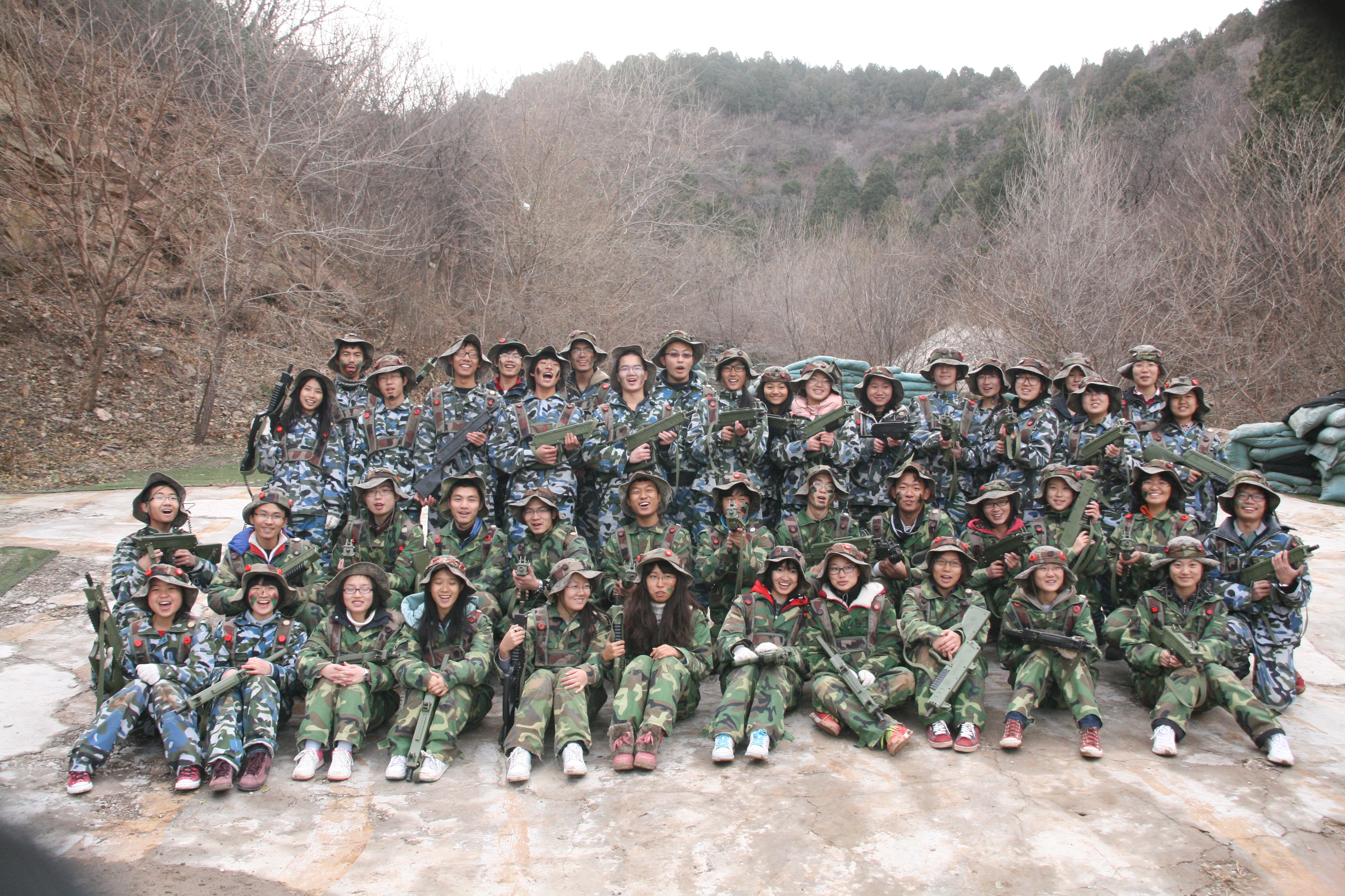 拓展训练活动前,全体同学在专业教官的带领下参观了抗日名将纪念馆,聆听了那段血与铁的故事,铭记了历史的责任,认识到今天的繁荣与和平是建立在我党先辈们浴血奋战的基础之上的,所有同学受到了切实的爱国教育。随后,在教官的指导下,我院同学进行了模拟军事对战的活动。同学们被分成两组,穿着绿色与蓝色的迷彩服,并配备了激光瞄准的模拟枪支。每场模拟战斗都以抗战或解放战争中的真实战斗为背景,两组同学有攻有守,并在各自推选的“指挥官”的领导下变换各种策略。