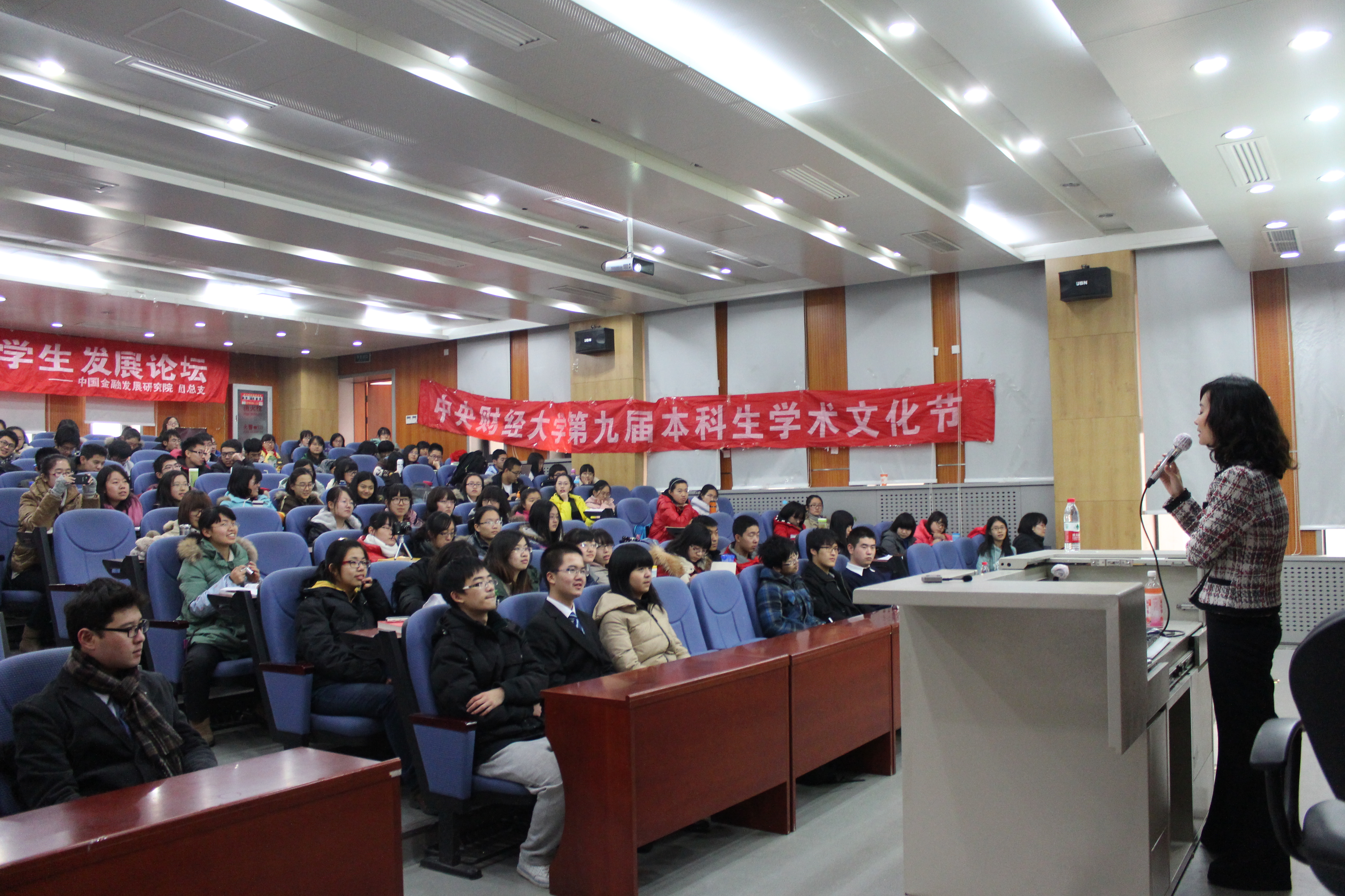 12月12日下午引航未来之路——中金发学生发展论坛之精品讲座“心灵与情感——正能量与学习爱”于3号学院楼222教室成功举办。此次讲座作为中央财经大学学术文化节精品讲座的一部分,主讲人为中央人民广播电台“中国之声”资深情感节目主持人青音女士。中国金融发展研究院团总支书记李学谦老师和全校部分学生到场聆听了讲座。