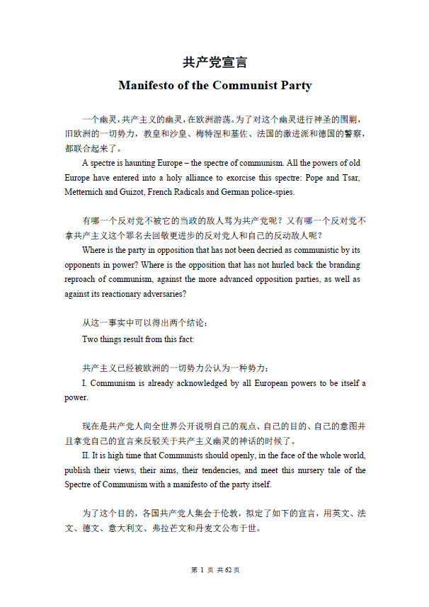 王一帆(中国财政发展协同创新中心硕士生党支部):制作双语版《共产党宣言》对于我而言是一次非常有意义的经历。通过研读这本经典著作,我在原先对马克思主义和共产主义的思想和理念认识的基础上,更深刻地了解了马克思主义的基本理论以及共产主义运动的起源和发展。我也深刻认识到共产主义的实践路线是需要及时根据国情和时代特点来调整和改进的。历史上的共产主义实践经验告诉我们,只有在广泛的民主基础上,才能建立一种真正意义上的社会主义制度。学习过程让我更加了解了共产主义的思想和实践,感受到了其对人类进步的巨大贡献。同时,也让我认识到,共产主义的实践需要不断探索、改进和完善。