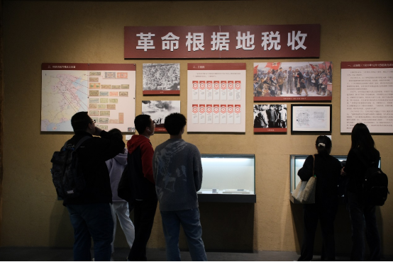 随后,同学们自行参观。博物馆展厅内陈列着一幅幅税收相关的照片、展品和文物,展示着中国税收发展的历史轨迹。中心同学们通过仔细观看这些珍贵的文物、文献和影片,从多个角度、全过程、沉浸式地重温了四千年波澜壮阔的中国税收,进一步认识到税收在经济社会发展中所起到的重大贡献,并积极与彼此交流,分享他们对税收历史的观点和理解;通过参与互动小游戏了解税收历史故事,并检验参观学习中所获得的成果。通过回顾新中国成立后的税种、税制变迁,深入了解税收改革的历史进程,从中体悟到税收“取之于民,用之于民”的原则。