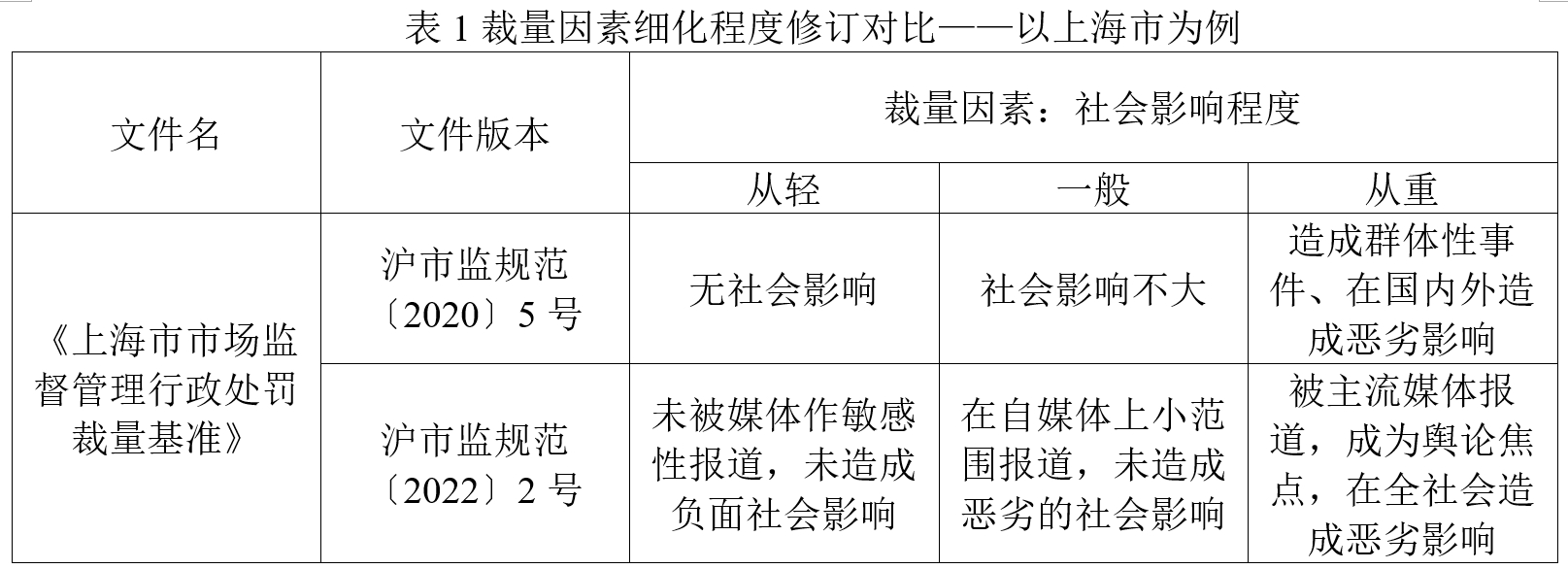 3.裁量实践面临风险。行政处罚案件的裁量需要同法院、检察院和纪检机关等多个单位协调配合。然而,市场监管领域基层执法面临着过罚不当的司法审查风险以及滥用职权的纪检监察风险。究其原因,主要有两个维度的问题。一是基层执法人员与司法机关在案件定性与裁量考虑的问题上侧重点不同。二是规则供给不足与配套制度滞后等问题导致行政执法人员在处理涉及“减轻”和“免除”等裁量情形的案件时缺乏有效的参考依据。