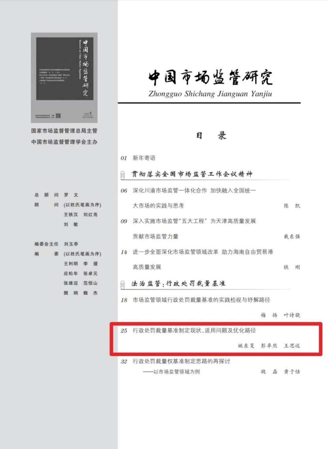 近日,作为课题转化成果的论文《行政处罚裁量基准制定现状、适用问题及优化路径》在《中国市场监管研究》2025年第1期刊发。该论文由姚东旻教授、中心博士生彭卓然、王思远共同撰写,中央财经大学中国财政发展协同创新中心2021级硕士研究生王璐瑶对本文亦有贡献。