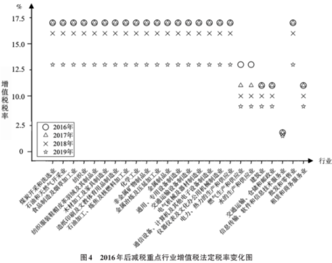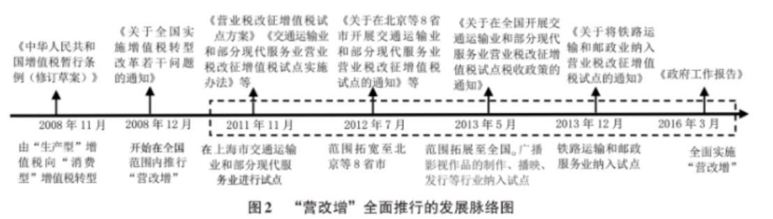 自2012年起,我国经济增长进入新常态,营业税与增值税两税并行的税收制度已无法适应我国经济发展的新状况。自2012年1月1日起,国家针对交通运输业和部分现代服务业,在上海开展营业税改征增值税试点工作,标志我国“营改增”阶段正式开始。到2017年,我国减税降费总体处于定向减税与普遍性降费阶段。