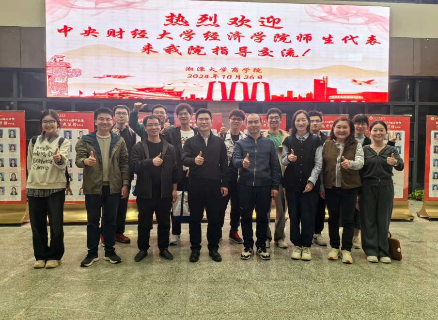 10月26日下午,由中央财经大学经济学院梁银鹤副教授、刘晓勤老师和基地辅导员范颖老师带队,21级基地班师生一行前往湘潭大学商学院,参加“红色基因植入数字经济人才培养研讨会”。此次访问旨在强化两院之间的友谊,探讨在数字经济时代将红色基因融入人才培养的建设心得。