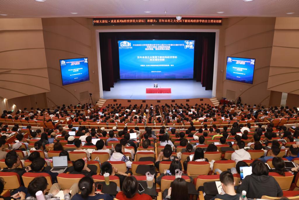 4月25日下午,北京大学新结构经济学研究院院长林毅夫教授应邀来校做题为“百年未有之大变局下新结构经济学的自主理论创新”的专题报告。报告会在中央财经大学沙河校区千人讲堂举行,吸引了近千名师生现场参加。这是2024年学校党委理论学习中心组第6次集中学习,也是中财大讲坛·求是系列讲座和经济学院“经世济民大讲坛”专题讲座。报告会由校长助理、经济学院院长陈斌开主持。