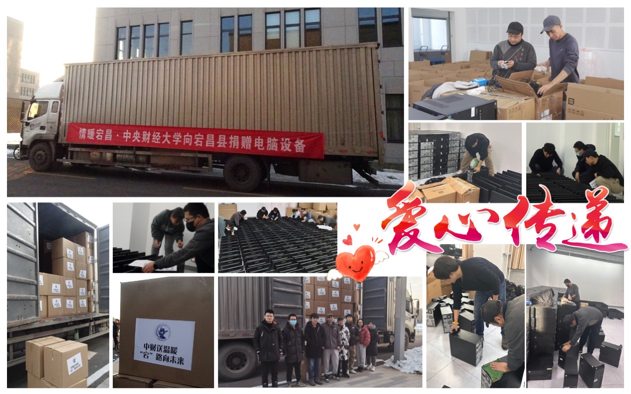 2023年12月25日,北京经历了罕见的大雪和低温天气后,迎来了久违的冬日温暖。和这天气一样暖心的是,我校智慧校园建设中心下属实验中心工作人员正在忙碌地整理电脑和搬运装车,这次整理装车的400套台式机电脑将以中央财经大学的名义捐赠给我校对口帮扶的甘肃宕昌地区。