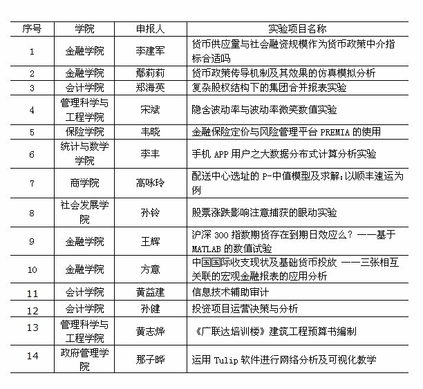 我校此次经济与管理类校级典型实验项目评选工作已全部结束,共有14个典型实验项目予以立项,如下表所示: