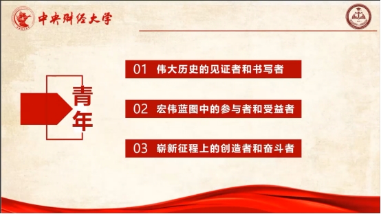 接着,她详细阐释了对于新时代青年的定义。她指出,新时代青年就是伟大历史的见证者和书写者、新时代青年是宏伟蓝图中的参与者和受益者、新时代青年也是崭新征程上的创造者和奋斗者。她以事例深入展开了对新时代青年的这三个定义的形象化的描摹,明确呈现了新时代青年应具备的素质和时代精神。