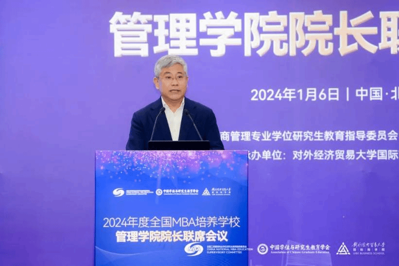 2024年1月6日,2024年度全国MBA培养学校管理学院院长联席会议在北京顺利召开,全国MBA教育指导委员会委员、执行院长王瑞华应邀参加会议。本次会议由全国工商管理专业学位研究生教育指导委员会、中国学位与研究生教育学会主办,对外经济贸易大学国际商学院承办。