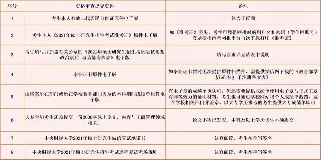 参加复试的考生须按照附件1《中央财经大学粤港澳大湾区研究院资格审查材料一览表》提前准备。