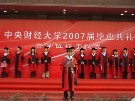 6月24日清晨,校园里惠风和畅,彩旗飘扬,中央财经大学2007届研究生毕业典礼暨学位授予仪式在主教楼前广场隆重举行。我院2007届毕业研究生与全校995名毕业研究生齐集一堂…