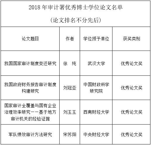 2019年4月,审计署公布2018年审计署优秀博士学位论文名单,由校外导师郝万禄教授、校内导师陈波教授联合指导的我院2016届博士毕业生宋苏阳的学位论文《军队绩效审计方法…