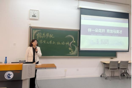 学生处学生工作发展办公室主任李菊老师做了题为“伴一朵花开、育龙马英才”的培训讲座。她首先从学校管理制度层面对班主任角色定位、选聘条件及考核等方面进行介绍,并通过真实工作案例分析,强调班主任工作需要秉持爱心、责任心和耐心,承担引路人、指导者和联络者的角色去开展工作。