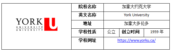 约克大学(York University),位于加拿大多伦多北郊,是全加拿大综合规模第三大的综合类大学。大学建立于1959 年,当时的约克大学被视作多伦多大学的分校,如今校园宽阔,共占地635 公顷,面积之大可以用“一望无际”来形容。学校设施全面,设有11个学院,24个研究中心。