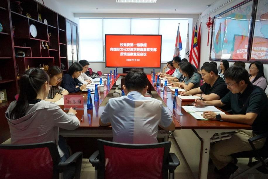2024年7月3日上午,校党委第一巡察组反馈巡察国际文化交流学院直属党支部情况会议在学院南路校区中财大厦1032会议室召开,会议深入学习贯彻习近平总书记关于巡视工作的重要论述,全面落实党的二十大关于巡视工作的重要部署,贯彻落实新修订的巡视工作条例,对做好巡察整改提出工作要求。