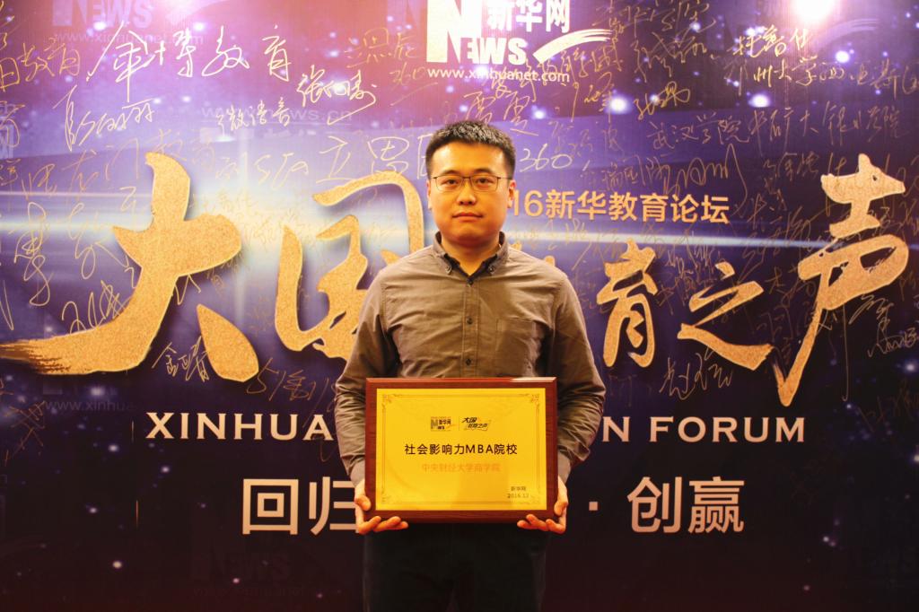 12月9日,由新华网主办的第七届“大国教育之声”论坛活动在北京圆满落幕。本次盛典现场公布了社会影响力MBA院校等名单,中央财经大学商学院再度凭借良好的社会声誉和品牌价值,荣膺“2016年度社会影响力MBA院校”称号。