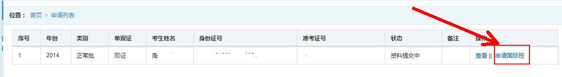(1) 考生点击“申请国际班”进入填写申请表信息,带*的是必填项,附件中上传英语能力的证明材料。填写完整后,提交申请信息,中心将会对所有申请者的材料进行审核,择优确定最终具有IMBA班申请资格的考生名单。