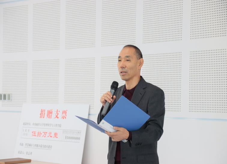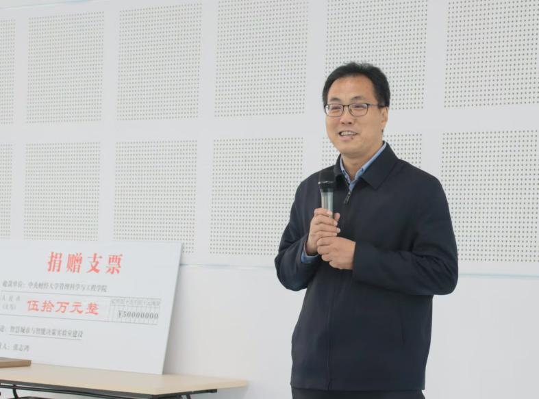 刘志东院长感谢学校的信任支持,将建设智慧城市与智能决策实验室的任务交予管理科学与工程学院;感谢张志鸿校友在了解到学校建设资金紧张的情况下,慷慨解囊支持实验室的建设。他表示,张志鸿校友长期支持学校教育事业的发展,体现了高度的社会责任感和对母校的拳拳爱心,后续学院将用好善款,落实好实验室建设工作,让捐赠资金发挥最大效用。他勉励在座的各位同学向以张志鸿校友为代表的优秀学长学习,在未来的日子里努力学习、好好工作、报效祖国、回馈社会。