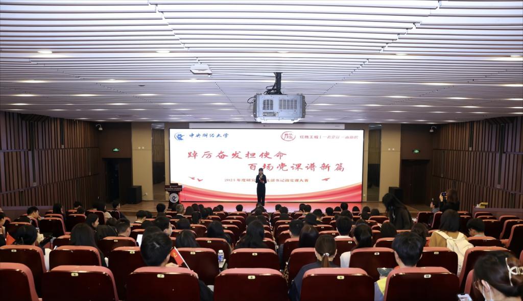 为深入开展学习贯彻习近平新时代中国特色社会主义思想主题教育,积极落实学校主题教育工作安排,大力推进我校“财经思政+”育人项目建设,4月26日上午,研究生工作部在沙河校区图书馆报告厅举办“踔厉奋发担使命 百场党课谱新篇”2023年度研究生党支部书记微党课大赛。校党委常委、副校长李涛,研究生工作部部长、研究生院院长白彦锋,以及各学院(研究院、中心)研究生工作负责人、研究生党建工作负责教师、研究生党支部书记、党员骨干代表参加活动。