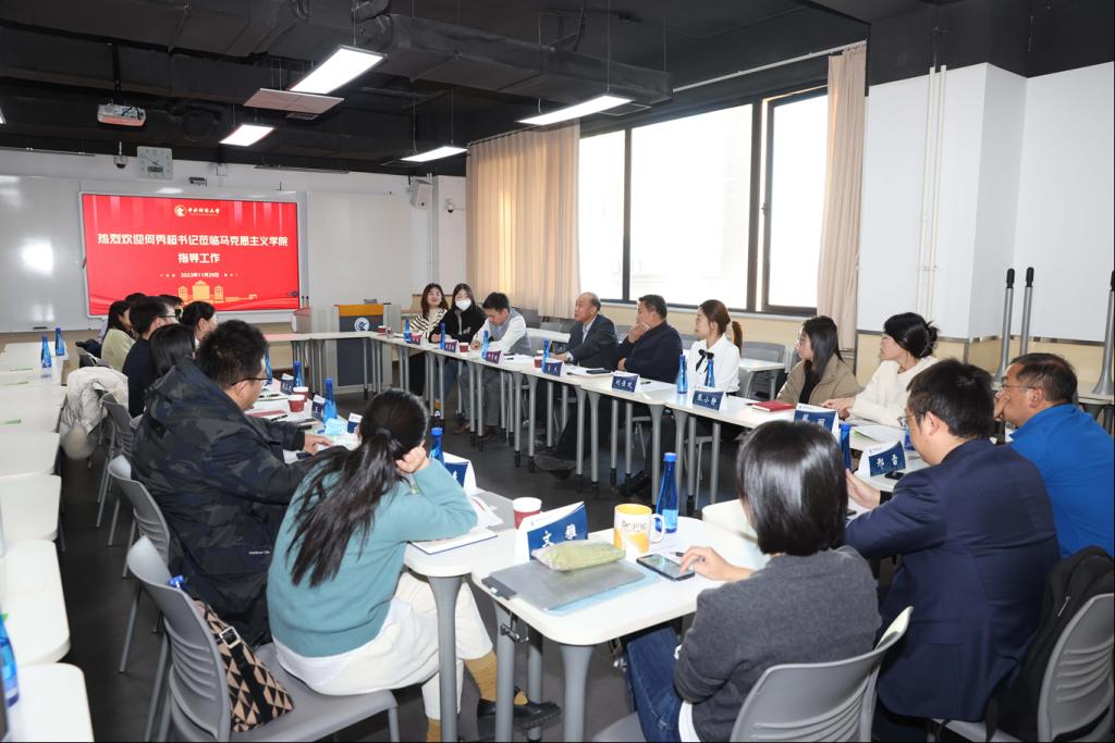 在现场办公会环节,何秀超书记认真听取了师生及党员代表的发言,对学院党建、思政课建设、人才培养等方面工作进行指导,对师生关心的学术研究、思政课教师队伍后备人才培养、党支部建设等问题进行了现场办公。何书记强调,马克思主义学院要坚决落实习近平总书记关于“马院姓马,在马言马”的要求,进一步发挥学科特色,在方法论层面为学院内部治理和学校治理提供理论支持,用马克思主义的立场、观点、方法为学校治理实践提供有力支撑。