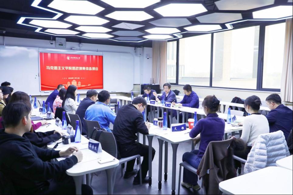 为贯彻落实党的二十大和二十届二中、三中全会精神,落实好习近平总书记关于思政课建设的最新指示精神,充分发挥中华优秀传统文化、革命文化和社会主义先进文化对思政课建设的力量根基作用,11月12日下午,马克思主义学院在沙河校区召开“博物馆里的‘大思政课’”专题备课会,校长马海涛参加备课会并指导点评。学校办公室、马克思主义学院有关负责人,习近平新时代中国特色社会主义思想概论教研室全体教师,思政课教师后备人才计划研究生代表等参加备课会。备课会由马克思主义学院院长黄刚主持。