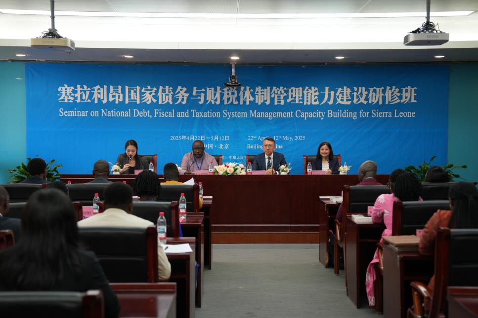 4 月 22 日上午,由商务部主办、中央财经大学承办的“塞拉利昂国家债务与财税体制管理能力建设研修班”正式开班。来自塞拉利昂财政部的17位高级官员齐聚中央财经大学,开启为期 21 天的专业研修。塞拉利昂财政部副主任Joseph Albert Fatoma、我校继续教育学院党总支书记李汉军在开班仪式上致辞。