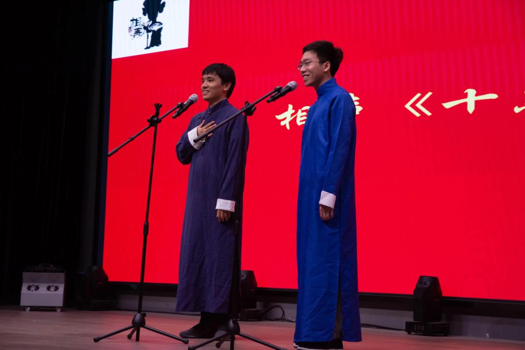 李驿达、郭昕瞳的相声《十点钟开始》,两人一唱一和讲述各种关于理想的看法,配合默契,引得全场观众哈哈大笑。