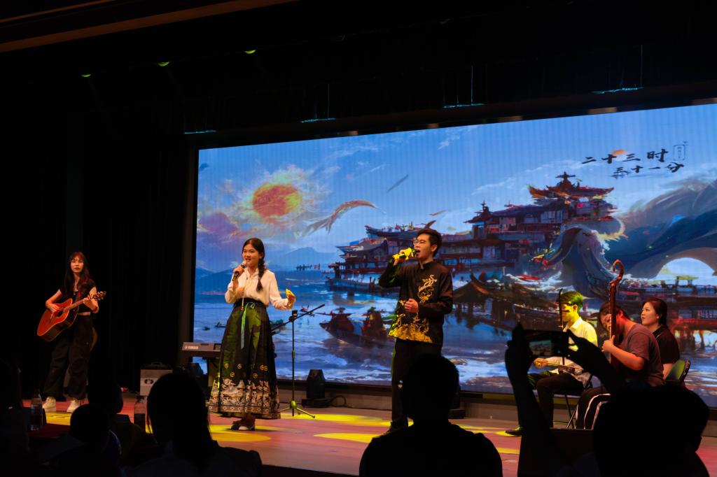 整体活跃队表演歌曲《十年人间》,他们的乐队将西方乐器电子琴、吉他和中国传统民乐琵琶相结合,配合优美的歌声,呈现一场精彩绝伦的演出。