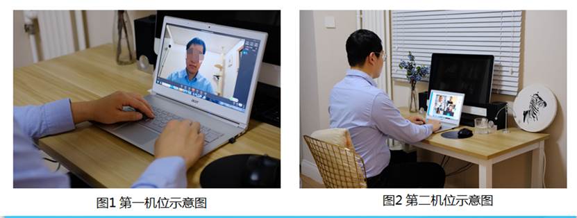 ①主机位:用于考生登录考试系统,完成人脸识别验证身份、在线答题、实时监控等。硬件设备为1台笔记本电脑或台式电脑,须配备自带摄像头或外接高清摄像头、麦克风。主机位从正面拍摄,放置在本人身前约 30cm 处,确保拍摄到本人上半身、表情、眼神、身后环境。保证面部清晰可见,不得佩戴帽子、口罩、墨镜等;不得化浓妆,不可遮挡耳部,不得佩戴耳饰或耳机,不得使用美颜或变声功能、不得使用虚拟背景。