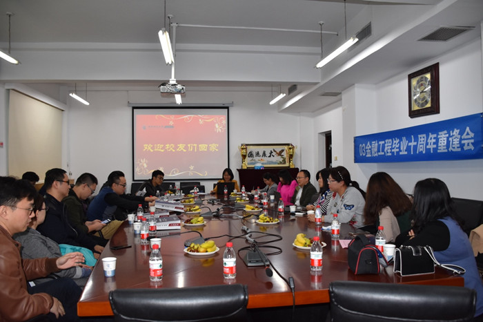 2017年10月14日下午,我院2003级金融工程本科校友毕业十周年返校座谈会在学院南路校区主教913会议室顺利举行。2003级金融工程班主任郭剑光老师,学生工作办公室主任王志梅,职业发展中心位锦与近20位校友欢聚学院,细数过往点滴,感怀美好青春,再续师生情谊。韩桂英校友主持此次座谈会。