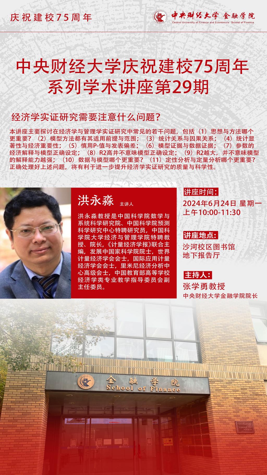 洪永淼 | 中央财经大学庆祝建校75周年系列学术讲座第29期