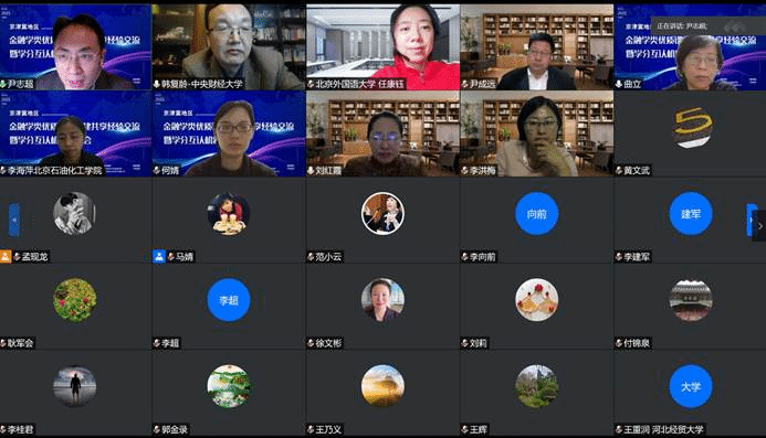 京津冀地区地区高校金融学科负责人圆桌论坛由首都经贸大学金融学院院长尹志超主持,中央财经大学金融学院韩复龄教授、河北大学经济学院副院长尹成远、北京石油化工学院经济管理学院院长助理李海萍、北京信息科技大学经济管理学院学院长曲立、中国农业大学经济管理学院金融系主任何婧、北京工商大学经济学院金融系主任郭娜、北京科技大学经济管理金融工程系主任王未卿、天津商业大学金融系系主任刘红霞、北京外国语大学国际商学院金融系主任任康钰、北方工业大学经济管理学院经济系副主任李洪梅参加了圆桌讨论,就金融学科课程建设、优质课程建设共享、学分互认、课程思政等介绍经验和发表个人见解。