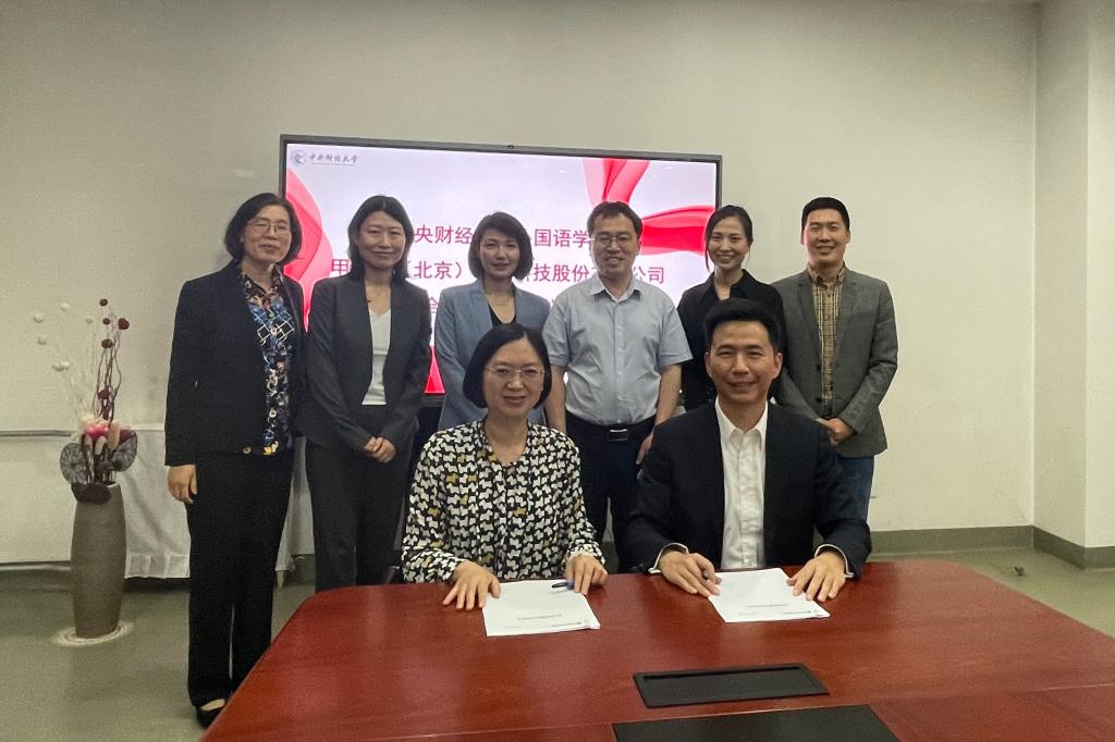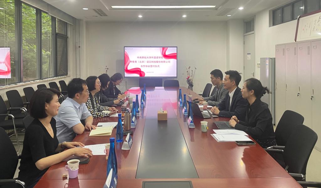 为推动学习贯彻习近平新时代中国特色社会主义思想主题教育走深走心走实,扎实推动办实事办好事,5月19日下午,外国语学院与甲骨易国家语言服务中心签署实习实践基地合作协议。外国语学院院长黄振华、党委书记冯俊波、党委副书记王珊珊、翻译系主任王素娥、翻译系教师邵珊珊;甲骨易国家语言服务中心董事长姜征、副总经理王艳玲、本地化事业部总经理于占国出席了本次签约仪式。