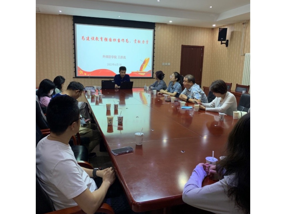 在观看专题纪录片后,外国语学院副院长王洪亮老师为大家讲授了“为建设教育强国担当作为、贡献力量”的主题党课。他首先从党的二十大报告中关于“教育强国”的两段重要论述入手,阐明了教育强国建设在完成党的现阶段中心任务、实现第二个百年奋斗目标中的基础性地位和战略性支撑作用。接着,王洪亮老师从内涵和性质两方面解读了“教育强国”这个概念,“教育强国”的提出,反映的是百年来中国国家命运、发展环境和建设任务的深刻变化,是在近代以来中国与世界命运交织中对教育与国家关系的实践探索,是新时代教育发展所担负的国家责任和使命的高度概括。然后,他梳理了5月29日习近平总书记在中共中央政治局关于教育强国第五次集体学习上的重要讲话精神,习近平总书记的话为我们在新征程上加快推进教育现代化、建设教育强国、办好人民满意的教育指明了前进方向、提供了根本遵循。最后,结合高校教师的本职工作,为党育人、为国育才的根本使命,王洪亮老师指出我们会进一步推动党的创新理论进教材、进课堂、进头脑,坚持不懈用习近平新时代中国特色社会主义思想铸魂育人,打牢青年学生成长成才思想根基,培养担当民族复兴大任的时代新人。