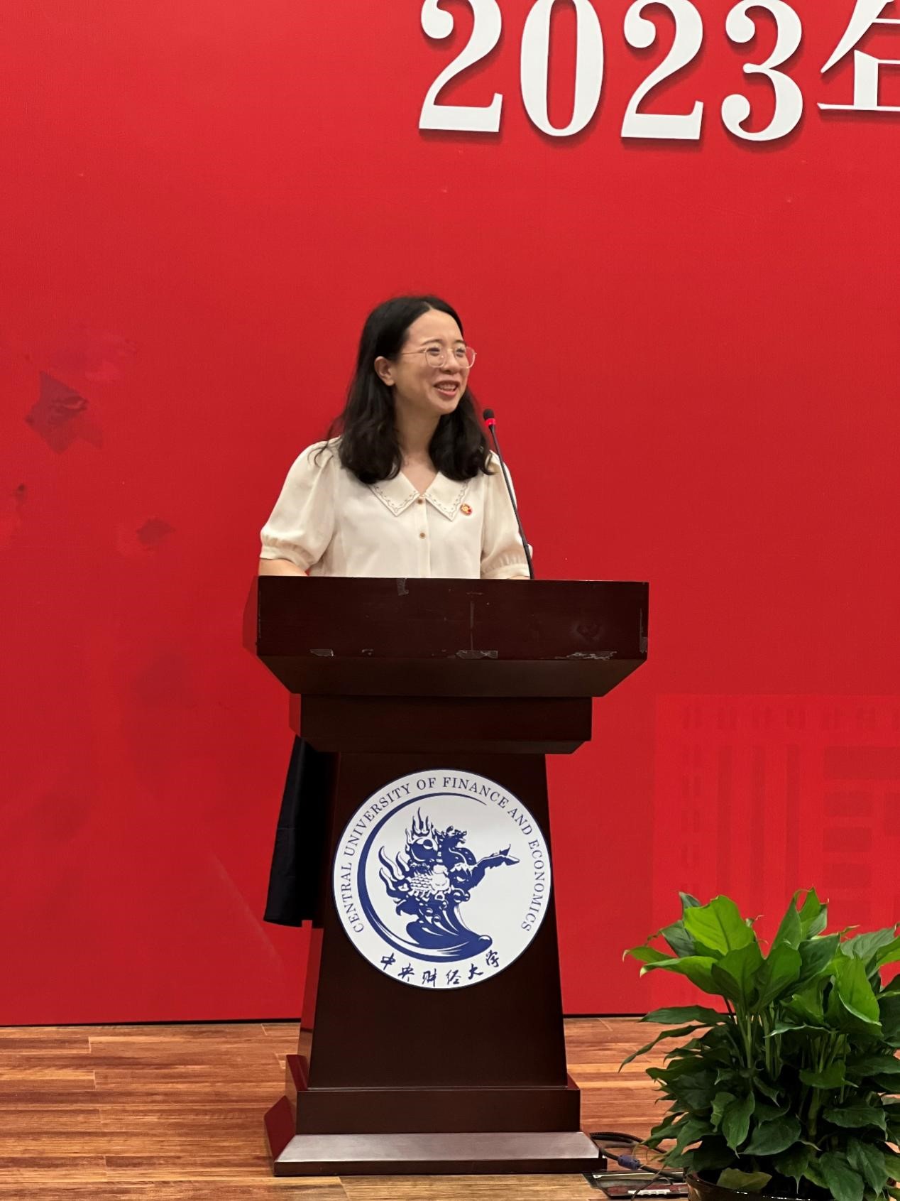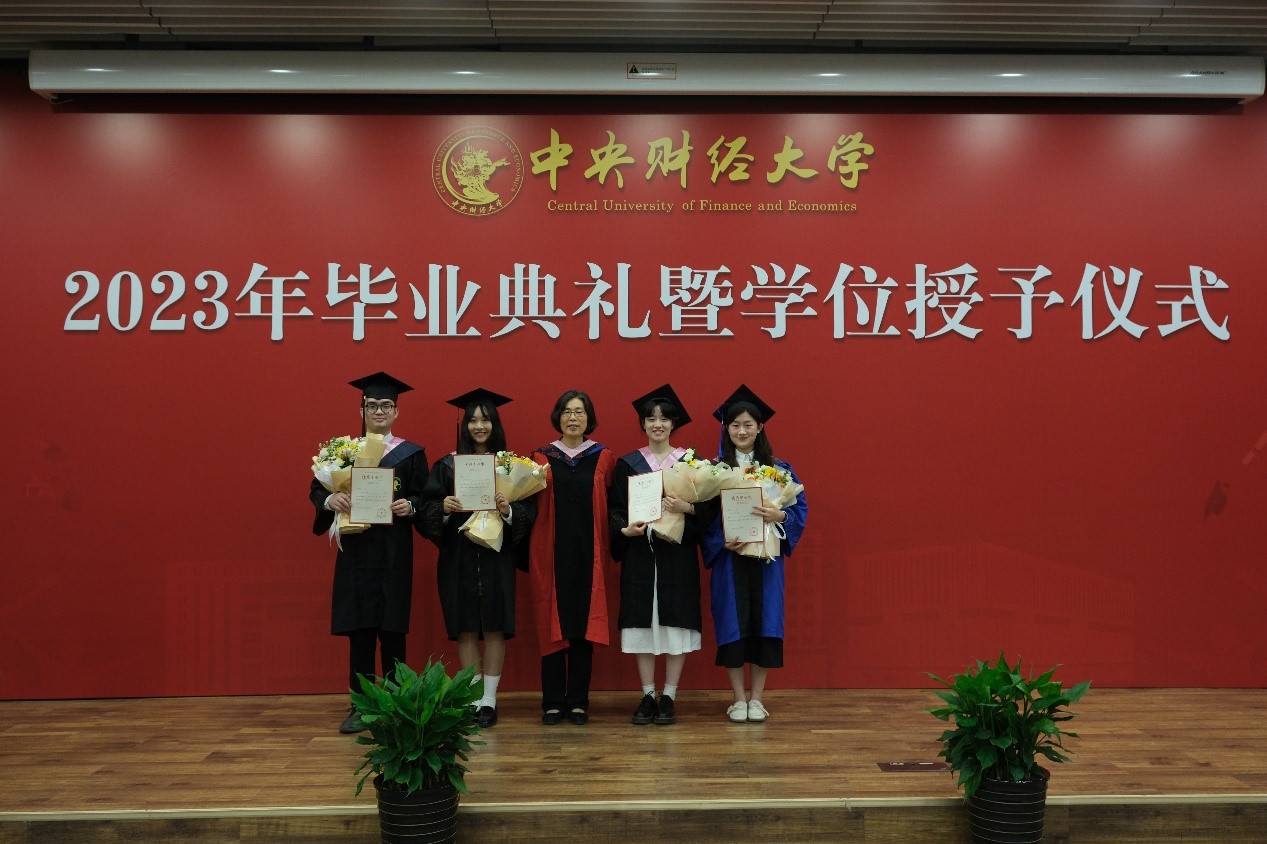 2023年6月26日上午10:00,中央财经大学外国语学院2023届毕业典礼暨学位授予仪式在沙河校区图书馆报告厅隆重举行。中央财经大学党委常委、副校长朱凌云,外国语学院党委书记冯俊波,院长黄振华,副院长王洪亮、张润晗,副书记王珊珊,翻译系系主任王素娥,英语系系主任范莉,毕业班班主任李丽、任课老师代表霍盛亚、李友敏、马剑波,校外导师李炜,校友代表郭枫, 2023届毕业生,部分2022届校友,以及部分毕业生家长出席了毕业典礼。典礼由王珊珊老师主持。