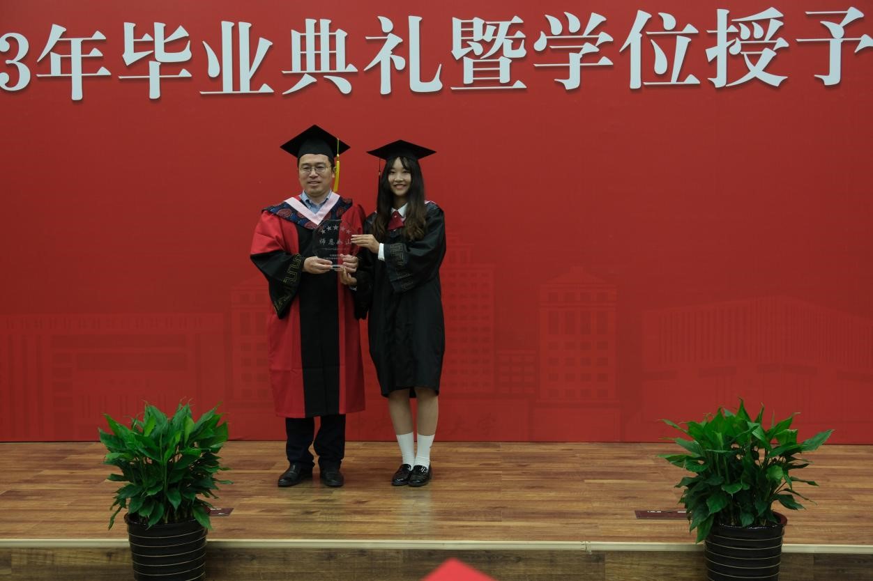 接着,李丽老师宣读市级优秀毕业生获奖名单,王素娥老师为获奖毕业生颁奖;马剑波老师宣读校级优秀毕业生获奖名单,李炜老师为获奖毕业生颁奖。