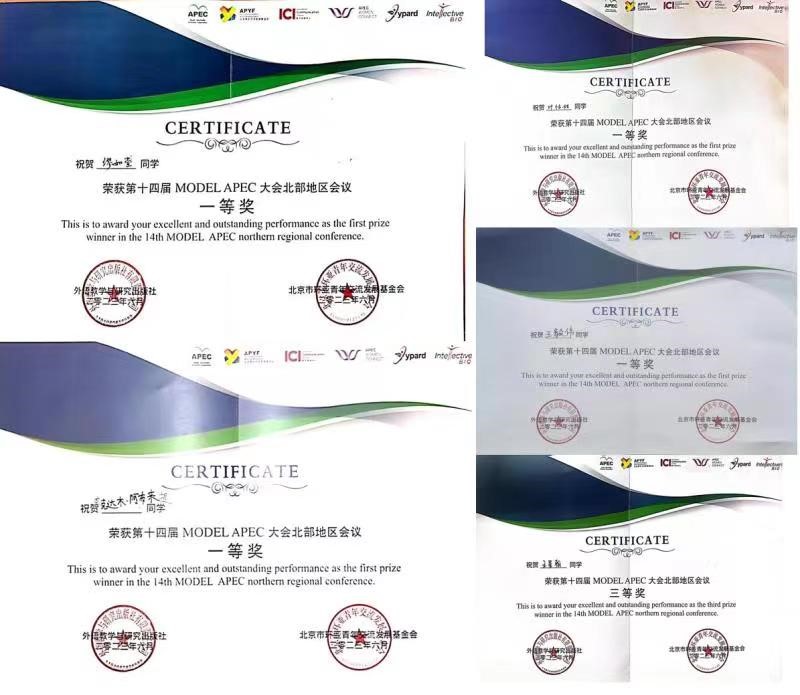 最终,我校选手从16所北部高校脱颖而出。缪如萱、叶恬甜、艾克达木·阿布来提、王毅伟同学荣获MOEDL APEC大会北部地区会议一等奖,并晋级国赛;王星翰同学荣获MOEDL APEC大会北部地区会议三等奖。