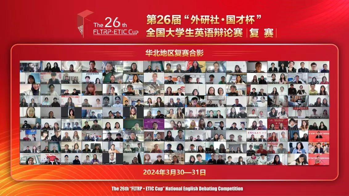 2024年3月30日-31日,第26届“外研社·国才杯”全国大学生英语辩论赛华北赛区复赛线上圆满举办。本次比赛由北京外国语大学主办,外语教学与研究出版社、北京外国语大学中国外语测评中心和北京外研在线数字科技有限公司承办。我校大学外语语言学习中心精心组织学生参赛并开展赛前辅导,比赛得到教务处大力支持。
