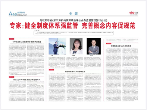 近日,财政部印发《第三方机构预算绩效评价业务监督管理暂行办法》(以下简称《办法》),我院公共事业管理系杨燕英教授接受了《财会信报》的记者采访,就《办法》的出台和施行发表了相关见解。