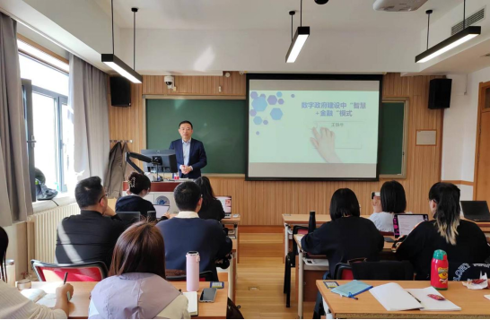 2023年3月15日上午,我院MPA课程《电子政务》嘉宾讲学暨“为公讲堂”第三十四期讲座在学院南路校区主教楼407教室成功举行。中国人民大学金融信息中心副主任、北京济安金信科技有限公司副总经理王铁牛博士受邀作“数字政府建设中的‘智慧+金融’模式”专题讲座。本次讲座由MPA教育中心副主任宋魏巍副教授主持。