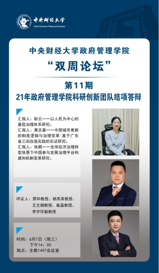 【双周论坛第11、12期】21年政府管理学院科研创新团队结项答辩、22年政府管理学院科研创新团队中期汇报