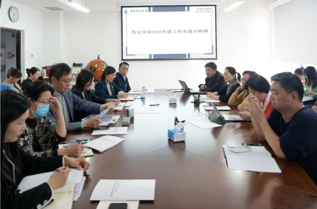 2025年3月12日下午,政府管理学院在学院南路校区主教学楼1407会议室召开全院教职工大会暨2025年度工作布置会。学院中层领导班子成员和全体教职工参会。会议由学院党委书记于鹏主持。
