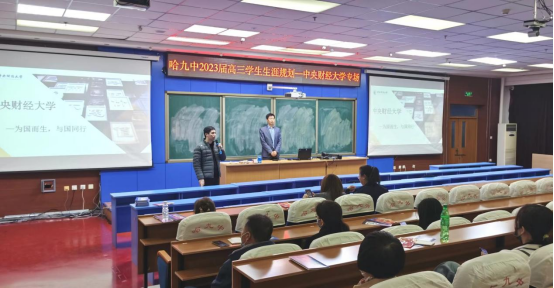 为进一步加强中央财经大学与重点中学的交流合作,提高学校良好社会声誉,强化高中与高校人才培养有效衔接,2023年4月24日至25日,政府管理学院党委书记于鹏教授、MPA教育中心副主任宋魏巍副教授组成的黑龙江省本科招生宣传组赴哈尔滨市第九中学、哈尔滨师范大学附属中学、大庆市第一中学举行招生宣讲会,与考生、教师和家长开展面对面咨询活动。