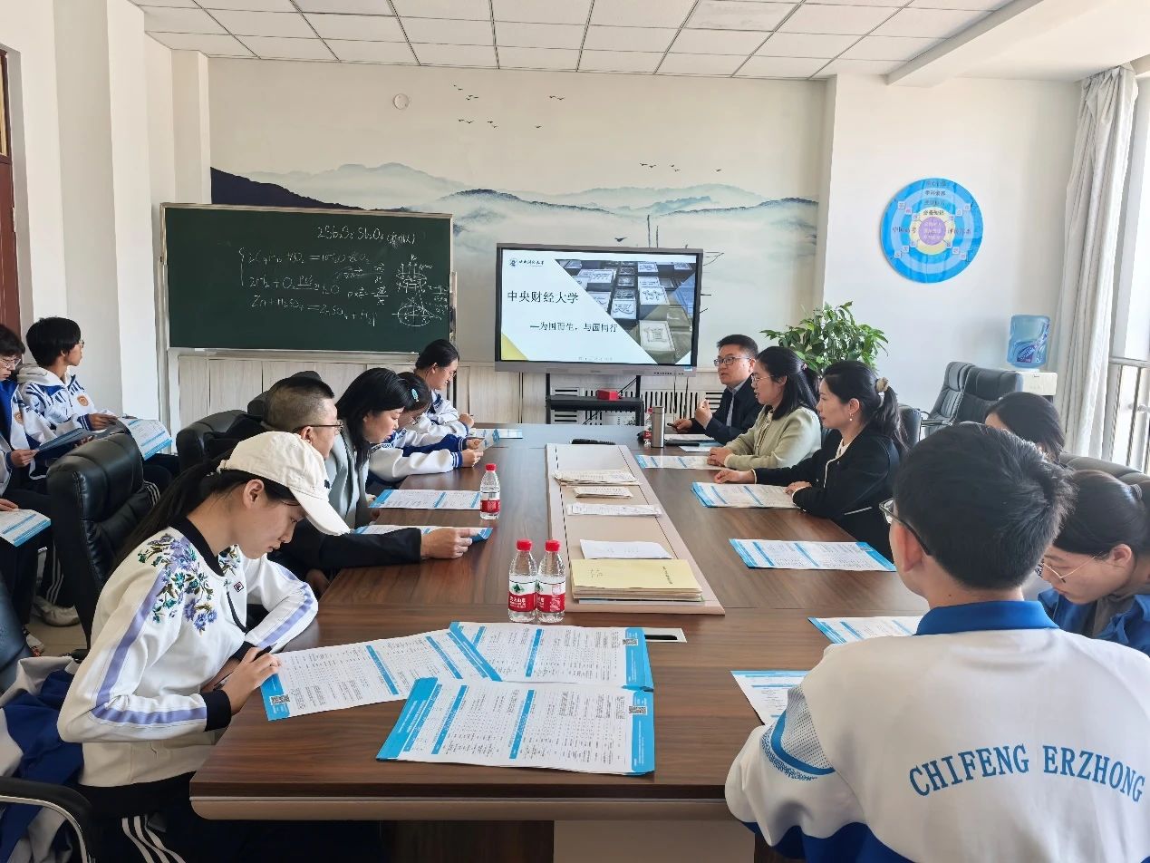 在北京师范大学集宁附属中学,招生宣传组与集宁附中校长樊瑞等领导班子成员进行了深入交流,并开展了“中央财经大学优质生源基地”授牌仪式。随后,刘一伟副教授系统介绍了中央财经大学的学科优势、培养特色及毕业生就业竞争力,并鼓励同学们积极报考中央财经大学。同学们积极提问,活动现场互动热烈、氛围融洽。