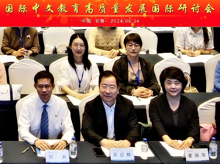 6月23至25日,由东北师范大学主办的国际中文高质量发展国际研讨会在长春成功举办。教育部中外语言交流合作中心政策研究处处长刘兵、世界汉语教学学会秘书长宋永波、东北师范大学党委副书记王延、北京语言大学吴应辉教授、北京语言大学姜丽萍教授、法国国民教育部汉语总督学,巴黎东方语言文化学院白乐桑教授、英国理启蒙大学张新生教授出席会议并做报告,来自全国70多所院校的相关教师出席本次研讨会。我校国际文化交流学院预科教师范姝婧和孙莉参加了本次研讨会。东北师范大学国际汉学院院长刘涛主持开幕式。