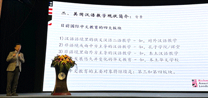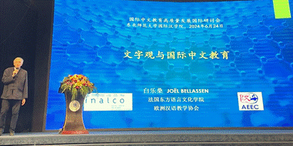 上午9:10,会议进入专家报告环节,北京语言大学吴应辉教授、法国国民教育部汉语总督学,巴黎东方语言文化学院白乐桑教授、英国理启蒙大学张新生教授、北京语言大学姜丽萍教授分别就国际中文教育类型体系构建、文字观与国际中文教育、国际中文教育环境下的英国的汉语外语教学、跨学科视域下专门用途中文教育学科建设等主题进行了精彩详细的报告。