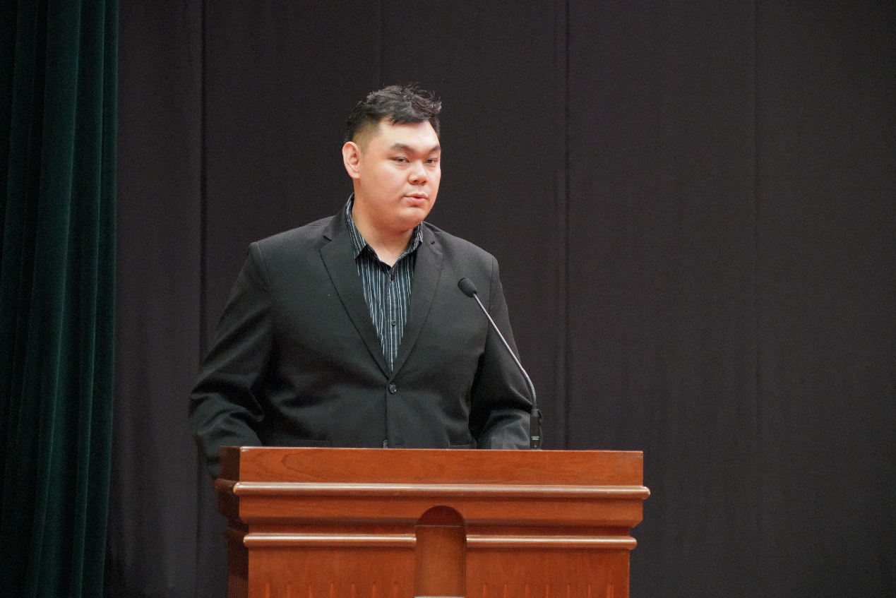 新生代表——2024级汉语国际教育硕士专业学位研究生邵诗荃和2023级预科留学生黄功勇发言。邵诗荃代表研究生新生郑重承诺将以严谨的态度,饱满的热情,投入到学习研究之中。黄功勇期待能在中财度过一段充实而有意义的青春岁月。
