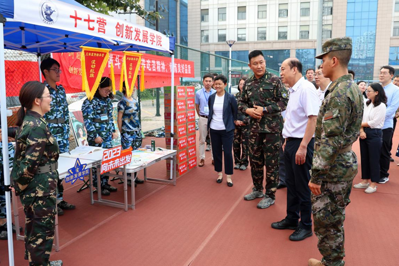 慰问增动力,温暖沁人心——记创新发展学院军训慰问 2023年9月7日上午,校领导以及各院领导一行前往军训场地,看望和慰问参训新生及教官。校党委书记何秀超,副校长朱凌云,创新发展学院党委常务副书记李汉军、常务副院长袁淳、党委副书记林艺茹、副院长兼中国经济与管理研究院副院长汪雄剑、中国金融发展研究院副院长赵阳等来到十七营进行亲切慰问。军训团副政委杨海林老师为各位领导介绍了十七营同学们的优异表现。学院还为同学们准备了贴有“创发加油,动力十足”的解暑饮料,...
